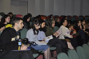 İletişim Fakültesi Konferans Salonu’nda 14 Mart günü gerçekleştirilen seminerin ilk oturumunda stresle başa çıkma yolları, nefes ve gevşeme teknikleri, iletişim becerileri ve beden dili, zaman yönetimi gibi konulara değinen Uzman Psikolog Özen, seminere katılan öğrencilere son bir ay içerisinde yaşadıklarını bir ile beş arasında derecelendirip şu anki psikolojik durumlarını yansıtmalarını istedi. Nefes ve gevşeme pratikleri yapıldı.