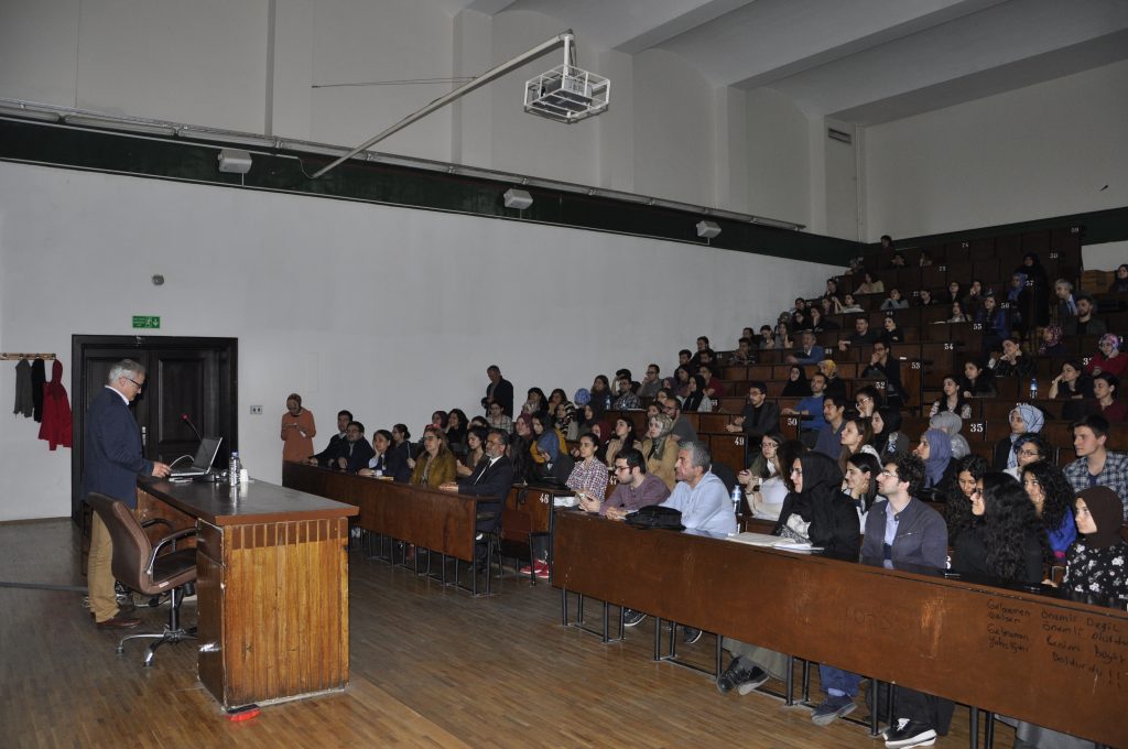 Edebiyat Fakültesi Türk Dili ve Edebiyatı Bölümü Öğretim Üyesi Prof. Dr. Ali Şükrü Çoruk tarafından İstanbul’un modernleşme sürecinin ve etkilerinin ele alındığı “Modernleşme Sürecinde İstanbul” adlı konferans 8 Mayıs’ta Edebiyat Fakültesi Amfi 5’te gerçekleştirildi.