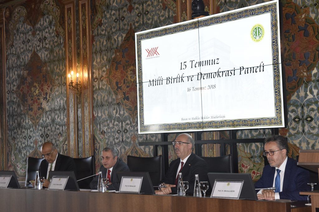 İstanbul Üniversitesi ve Yükseköğretim Kurulu (YÖK) ortaklığı ile düzenlenen 15 Temmuz Milli Birlik ve Demokrasi Paneli, Rektörlük Binası Doktora Salonu’da 16 Temmuz’da gerçekleştirildi.