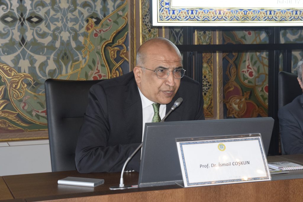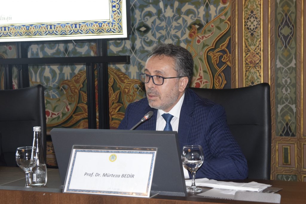 Prof. Dr. Alkan’ın konuşmasının ardından. İlahiyat Fakültesi Dekanı ve Din İşleri Yüksek Kurulu Üyesi Prof. Dr. Mürteza Bedir söz aldı. “15 Temmuz Darbe Girişimine İlahiyatçı Gözüyle Bakış” başlıklı konuşmasını gerçekleştiren Prof. Dr. Bedir, sözlerine “Başta 15 Temmuz şehitleri olmak üzere tüm şehitlerimizi rahmetle anıyorum. Onları her zaman hatırlamamız ve yad etmemiz gerekiyor” ifadeleri ile başladı. 15 Temmuz’a ilahiyatçı gözüyle bakmanın, cemaatler ve FETÖ yapısını değerlendirmenin hassas bir alan olduğunu belirten Prof. Dr. Bedir, “Türkiye’de din- devlet ilişkilerinde özellikle 100- 150 yıl içerisinde; inişli, çıkışlı, uzun, zorlu ve hassas olayların yaşandığı süreçlerden geçtik. Ülkedeki dini yapıları anlamak için bu tarihsel arka planın önemli olduğunu herkes kabul ediyordur” diye konuştu. Prof. Dr. Bedir, bu arka planı bilmeden bu yapıların nereden geldiği ve nasıl ortaya çıktığı konusu hakkında konuşmanın çok zor olduğunu ifade ederken, Türkiye’de din eğitimi meselesini tarihsel süreçler üzerinden ele aldı.