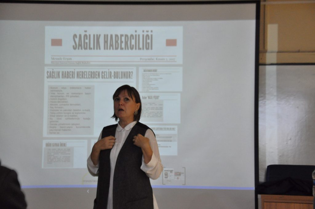 İletişim Fakültesi mezunu ve İletim gazetesi eski çalışanı Mesude Erşan, sağlık gazeteciliğinin kaynakları, ortaya çıkış süreci, doğru kaynak seçimi gibi konularda bilgi ve deneyimlerini aktardı.