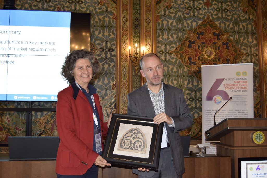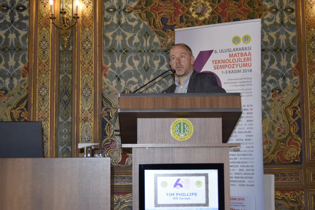 Sempozyumun ikinci oturumu Prof. Dr. Nergis Günsenin moderatörlüğünde başladı. İlk olarak IMI Europe’dan Tim Phillips “Inkjet Uygulamaları ve Pazar Gelişimleri” başlıklı sunumunu gerçekleştirdi. Ardından ikinci konuşmacı olarak sunumuna başlayan InPrint Show’dan Marcus Timson, “Endüstriyel Injekt 2.0, Bir Üst Seviyeye Yükselme” konulu sunumunu katılımcılarla paylaştı.