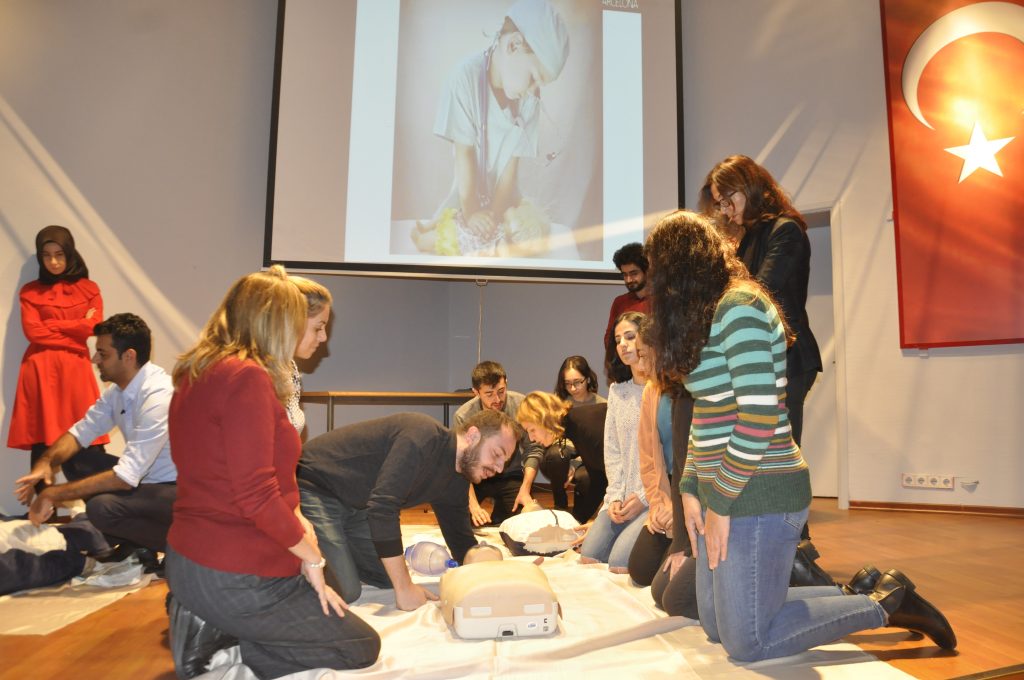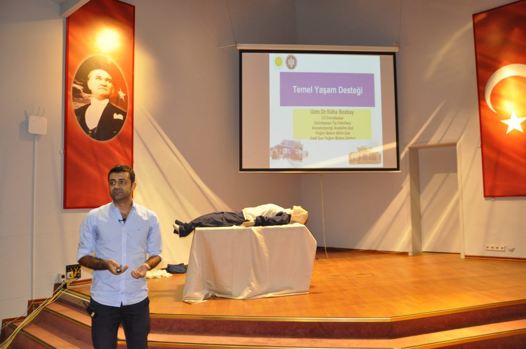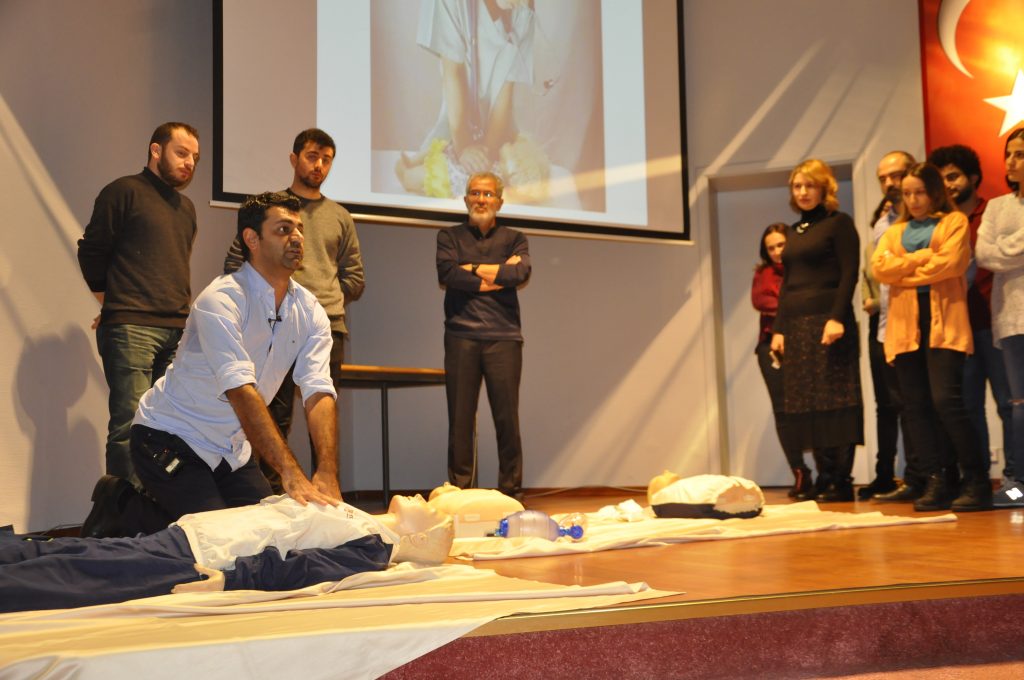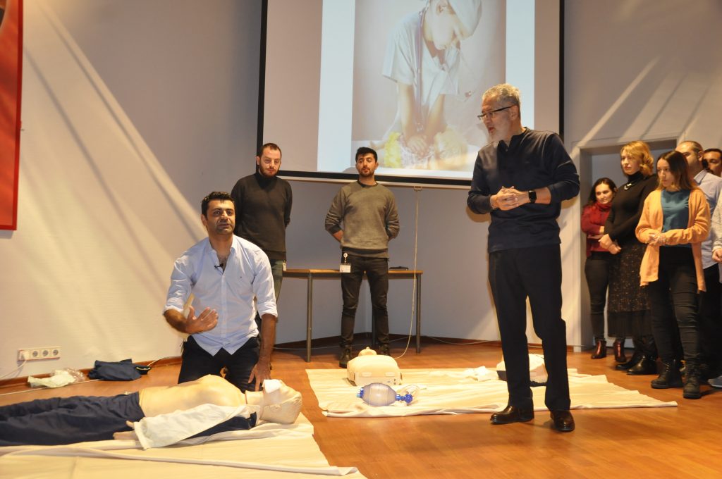 İstanbul Üniversitesi Cerrahpaşa Tıp Fakültesi Kardiyoloji Ana Bilim Dalı Öğretim Üyesi Prof. Dr. Hakan Karpuz yönetiminde verilen İlk Yardım Eğitimi, İstanbul Üniversitesi Cerrahpaşa Tıp Fakültesi Anesteziyoloji ve Reanimasyon Ana Bilim Dalı Öğretim Üyesi Prof. Dr. Fatiş Altındaş, Dr. Süha Bozbay, Dr. Fatih Yılmazer ve Dr. Murat Akcivan’ın katılımlarıyla gerçekleşti.