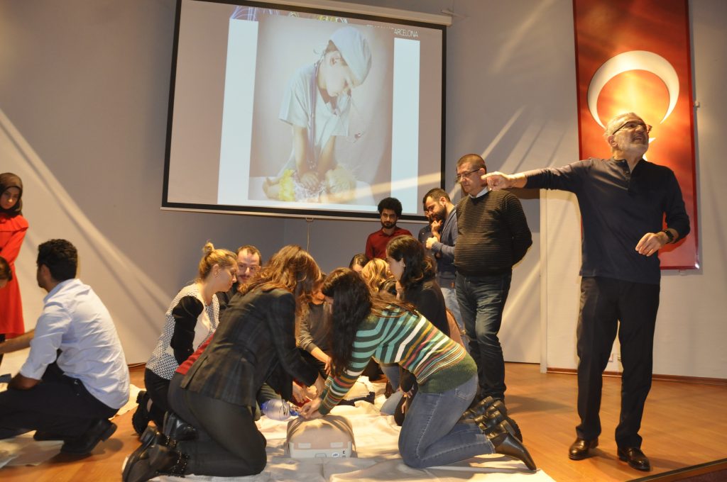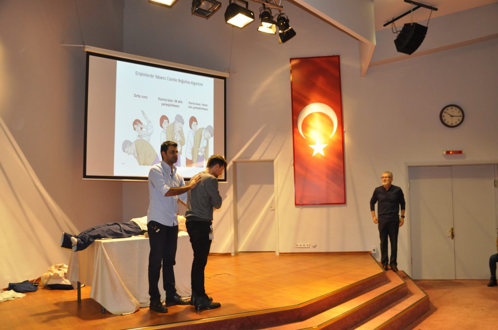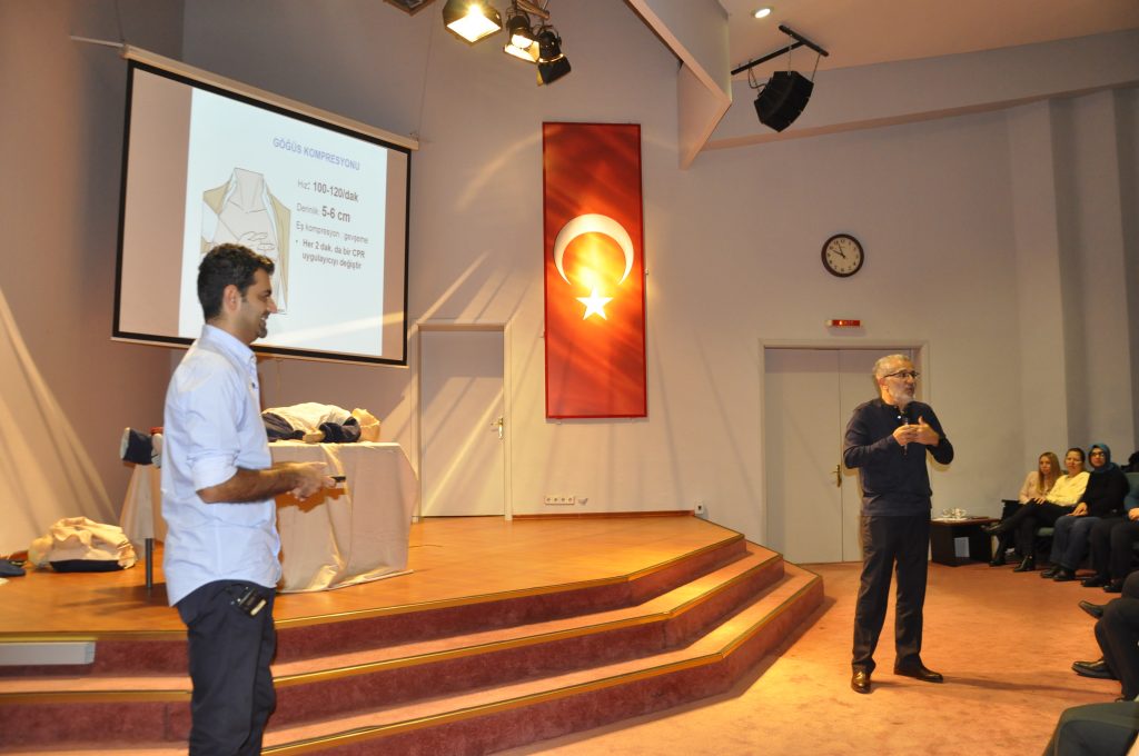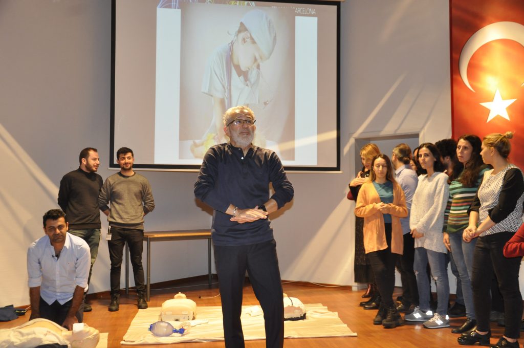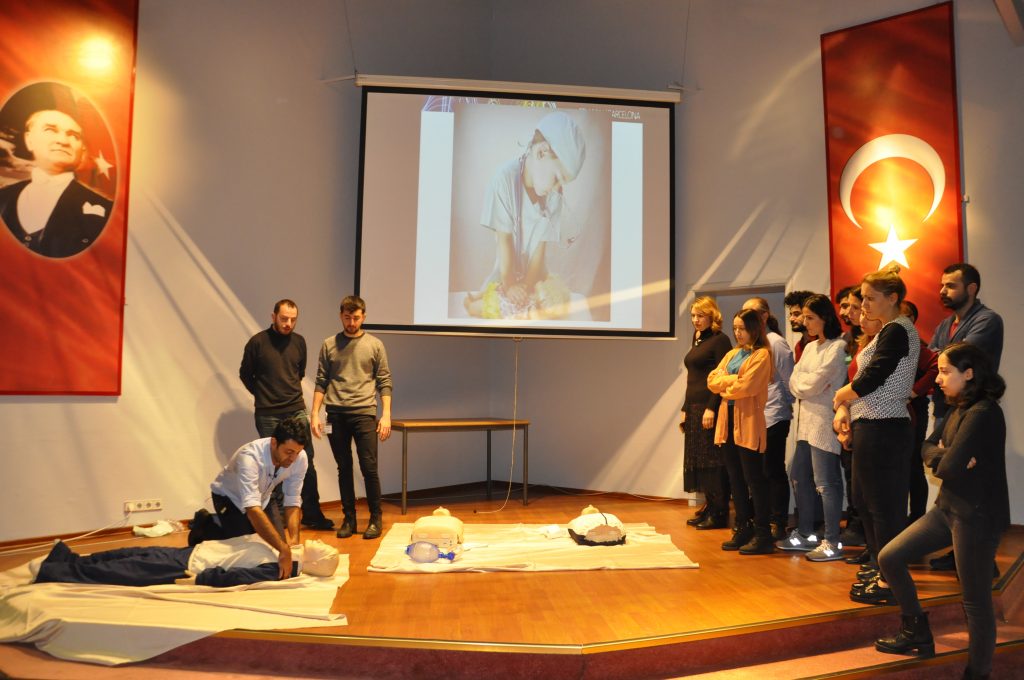İstanbul Üniversitesi Cerrahpaşa Tıp Fakültesi Kardiyoloji Ana Bilim Dalı Öğretim Üyesi Prof. Dr. Hakan Karpuz yönetiminde verilen İlk Yardım Eğitimi, İstanbul Üniversitesi Cerrahpaşa Tıp Fakültesi Anesteziyoloji ve Reanimasyon Ana Bilim Dalı Öğretim Üyesi Prof. Dr. Fatiş Altındaş, Dr. Süha Bozbay, Dr. Fatih Yılmazer ve Dr. Murat Akcivan’ın katılımlarıyla gerçekleşti.