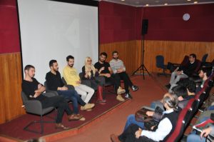 Gösterimin hemen ardından “Her Şey Yolunda” filminin yönetmeni Metehan Şereflioğlu, “Boşluk” filminin yönetmeni Elif Eda Karagöz, “Sen Adam Mısın” filminin yönetmenleri Alihan Erbaş ve Harun Köybaşı, “Kimse Elimi Tutmasın” filminin yapımcısı Alp Ertürk ve “Hikayeci” filminin yönetmeni Anıl Güldoğan’ın katılımıyla söyleşi gerçekleştirildi. Söyleşinin moderatörlüğünü Doç. Dr. Özgü Yolcu yaptı. Doç. Dr. Yolcu’ya Malatya Film Festivali Kısa Film Koordinatör Yardımcısı Hüsamettin İstenci eşlik etti.
