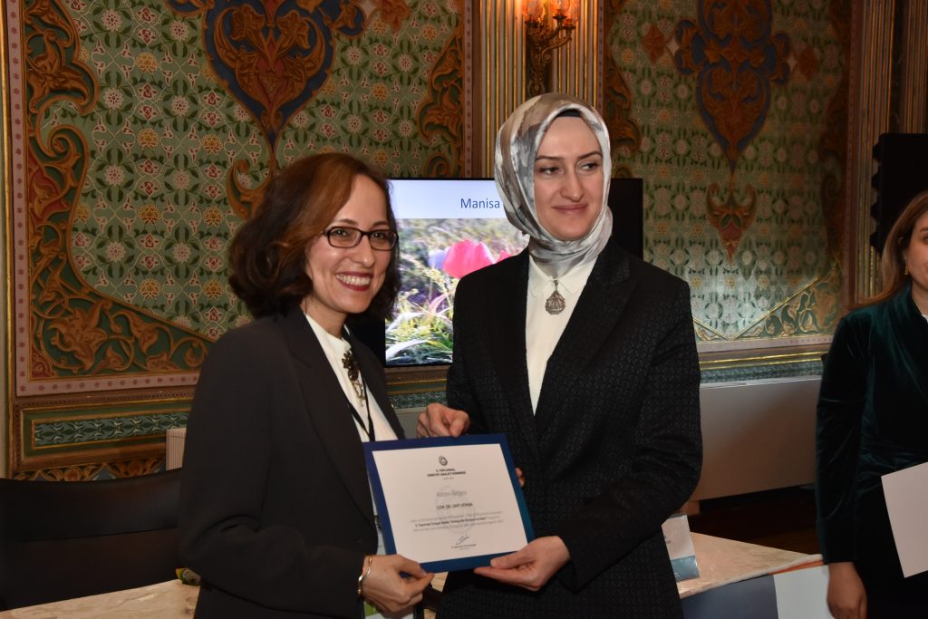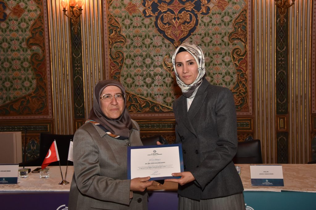 İkinci oturum kapsamında sunum yapanlara katılım sertifikalarını A Salonu’nda Sümeyye Erdoğan Albayrak, B Salonu’nda ise Kadem Başkanı Dr. Saliha Okur Gümrükçüoğlu verdi.