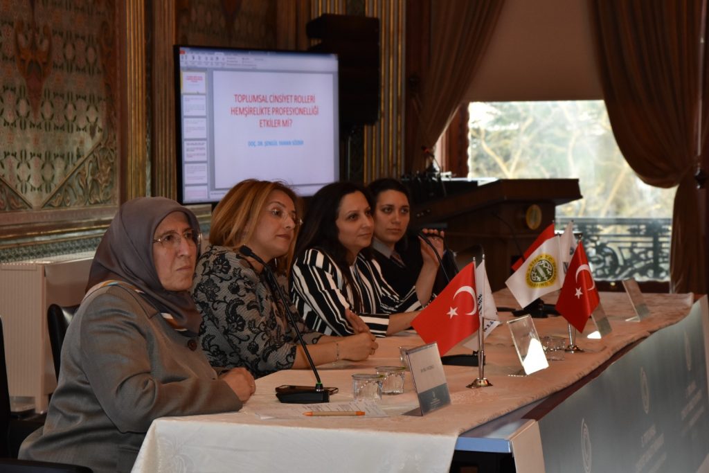 Oturumun son konuşmacısı olan Doç. Dr. Şengül Yaman Sözbir ise toplumsal cinsiyet rolleri ve hemşirelikte profesyonellik ilişkisini anlattı. Doç. Dr. Yaman Sözbir, “Hemşirelik mesleğinin kadın doğasına uygun olduğu yönünde bir inanış mevcut. Bu durumun hemşirelik imajını olumsuz yönde etkilediği ve mesleğin statüsünün düşüklüğünde etkili olduğu öne sürülmektedir” dedi.