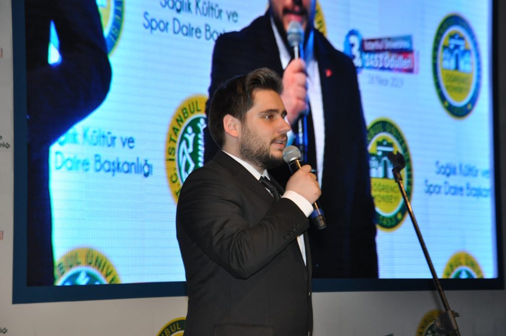 Emir Alp Turgut ise konuşmasında, “İlk yıldan beri aynı heyecan ve aynı özveri ile düzenlemekte olduğumuz programımıza teşrif ettiğiniz için hepinize teşekkür ediyorum. İstanbul Üniversitesi Öğrenci Konseyi olarak 3 yıldır üniversitemizin tarihine, kitlesine, büyüklüğüne yakışır bir şekilde böyle bir program düzenlemeye çalışıyoruz” ifadelerini kullandı.