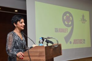 Prof. Dr. Adem Sözüer’in ardından Festival Direktörü Prof. Dr. Bengi Semerci konuklara festivale ve filmlere ilişkin ayrıntıları görsel sunumuyla devam etti. Prof. Dr. Bengi Semerci, Uluslararası Suç ve Ceza Film Festivali’nin 9. yılında “Uzun Metraj Film Yarışması” jürisini açıkladı. Adalet temalı filmlerin yarışmacı olarak katılacağı festivalde jüri başkanının Zuhal Olcay olarak belirlendiğini söyleyen Prof. Dr. Semerci, jüride ayrıca Izeda Gradevic, Sahraa Karimi, Onur Saylak ve Ioana Uricaru gibi ulusal ve uluslararası isimlerin olacağını belirtti. Prof. Dr. Semerci, adaletin sanat için sanatın da adalet için önemli olduğuna dikkat çekerek, “Biz bu inançla bu festivali oluşturduk. Dolayısıyla adaleti merkezde tutarak film üreten yönetmenlerimize teşekkür ediyoruz.” diye konuştu.