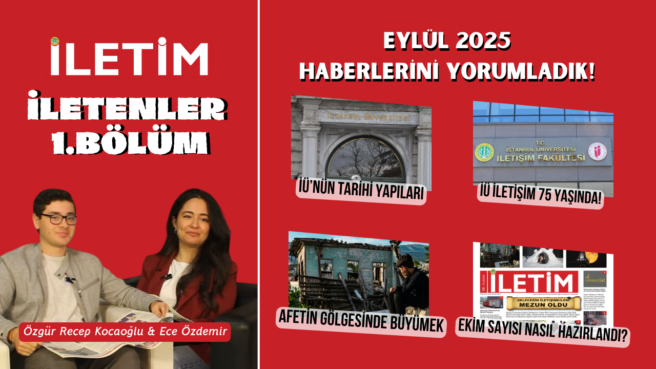 Ayın en dikkat çeken haberlerinin konuşulduğu İletenler’in ilk bölümünde İstanbul Üniversitesi’nin tarihi yapıları, İstanbul Üniversitesi İletişim Fakültesi’nin 75. yılı, afet bölgesinde çocuk olmanın psikolojik yönü konularını içeren haberler konuşuldu. Ekim 2025 sayısı hazırlıklarının nasıl geçtiği ele alındı.
