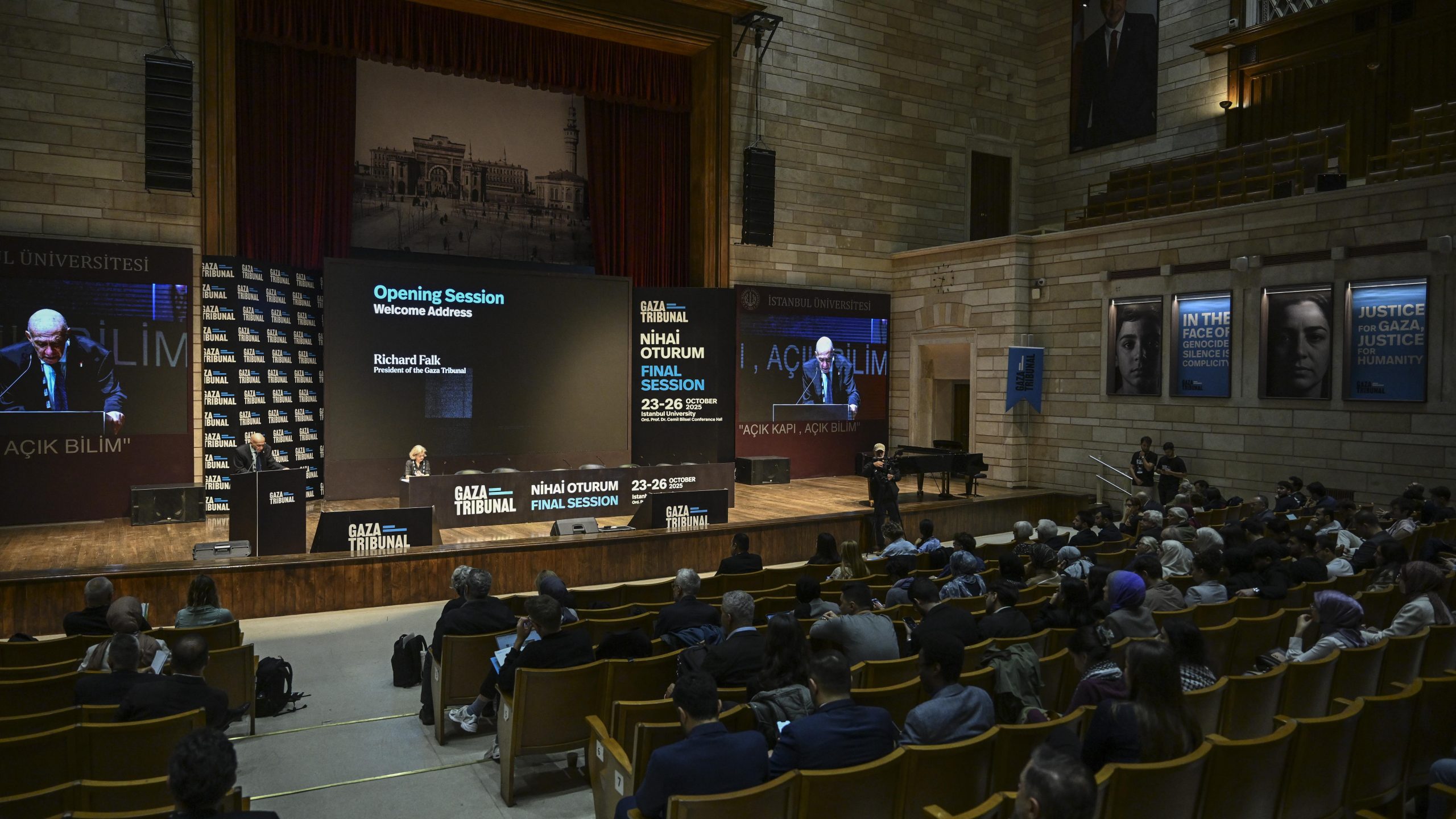 İstanbul, (İÜ Haber Merkezi) – İstanbul Üniversitesi, “Gaza Tribunal” kapsamında düzenlenen “Gazze Mahkemesi: Nihai Oturum” programının ilk gününe ev sahipliği yaptı. Etkinlik paneller, söyleşiler ve belgesel gösterimleriyle 26 Ekim 2025 tarihine kadar sürecek.