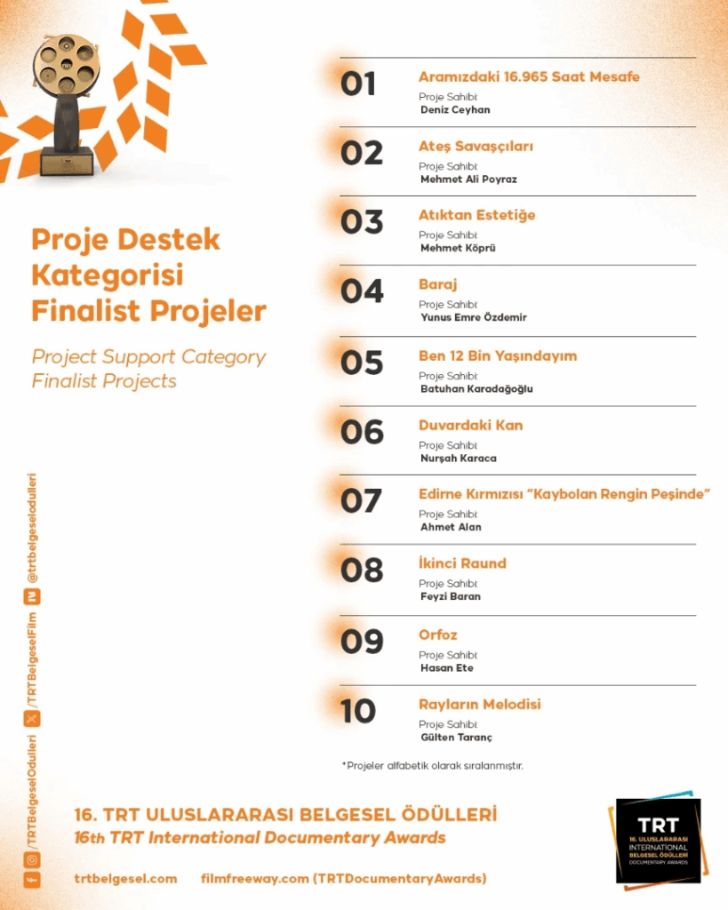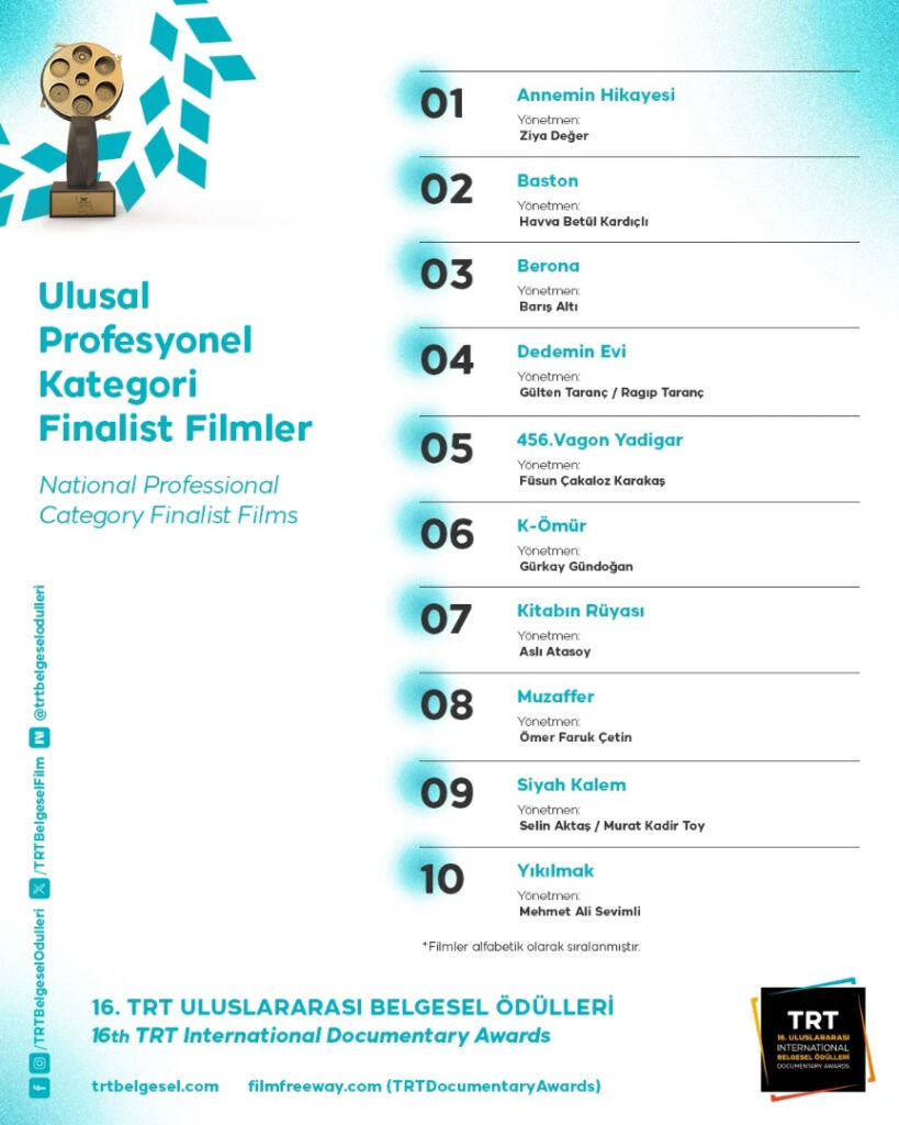 Film gösterimleri, paneller, yönetmen söyleşileri ve ödül törenine ilişkin detaylı bilgilere TRT Belgesel Ödülleri’nin resmi web sitesinden ulaşılabilir.