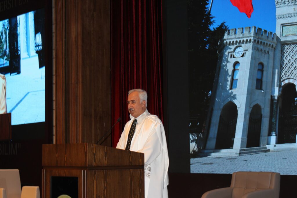 Örücü, İÜ’nün kurulduğu günden beri bilimi toplumun merkezine yerleştirerek insanlığa değer katmayı kendine ilke edindiğini belirtti. “İÜ’de öğrenci olmak yalnızca bir eğitim sürecine dâhil olmak değil; bilimin, kültürün ve sanatın kesiştiği köklü bir geleneğin parçası olmaktır” cümlelerini kullanan Örücü, eğitim sürecinde kazandıkları bilimsel farkındalık sayesinde olaylara çok yönlü bakabildiklerini ve toplumsal sorunlara yapıcı çözümler üretebildiklerini ifade etti.