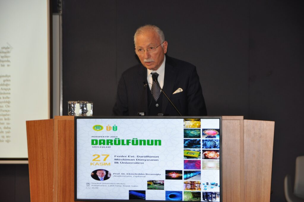 İstanbul, (İÜ Haber Merkezi) – Perspektif 2053 Darülfünun Söyleşileri kapsamında Prof. Dr. Ekmeleddin İhsanoğlu’nun katılımıyla “Fenler Evi: Darülfünun, Müslüman Dünyasının İlk Üniversitesi” başlıklı program gerçekleştirildi.