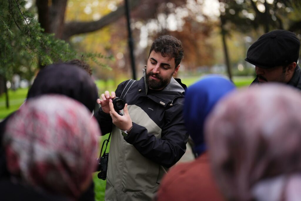 Uygulamalı olarak gerçekleştirilen fotoğraf çekimi sırasında katılımcılara ISO, enstantane hızı ve diyafram ayarlarının nasıl yapılması gerektiği, farklı ışık koşullarında hangi tekniklerin kullanılabileceği ve haber fotoğrafçılığında doğru anı yakalamanın önemi anlatıldı.