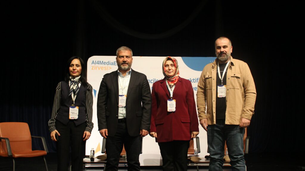 Moderatörlüğünü TRT Ürün Büyütme Takım Lideri Dr. Sümeyya Olcay Yaman’ın üstlendiği İletişimde Yapay Zekâ ve Dijital Dönüşüm başlıklı üçüncü panelde iletişim alanında yapay zekânın kullanım alanları, medya üretim süreçlerindeki dönüşüm ve dijital içerik stratejileri ele alındı.