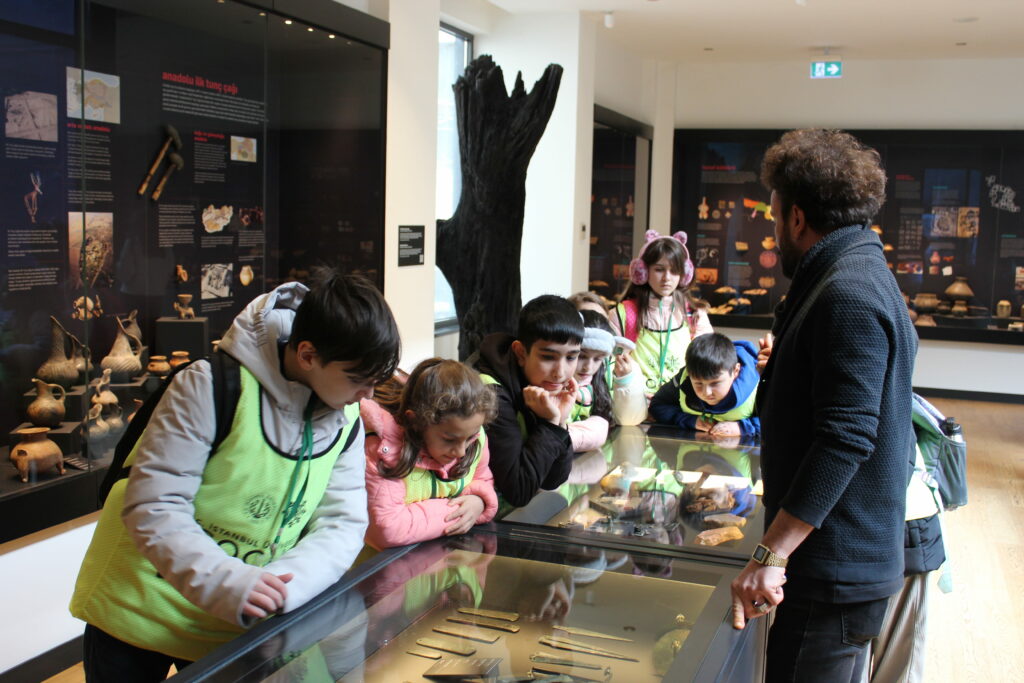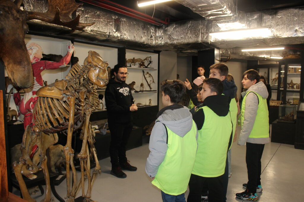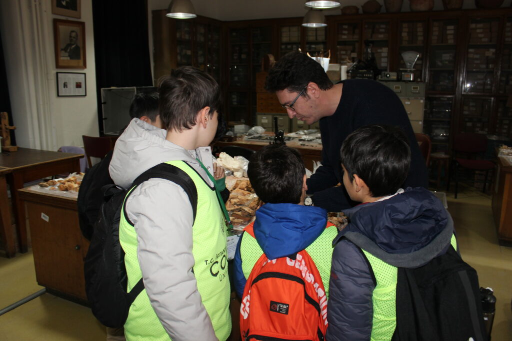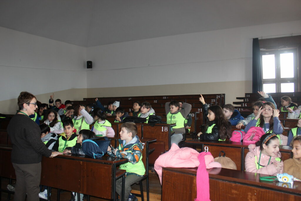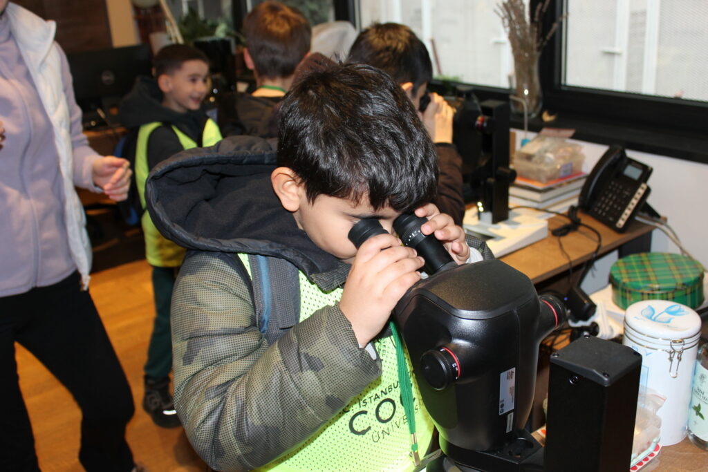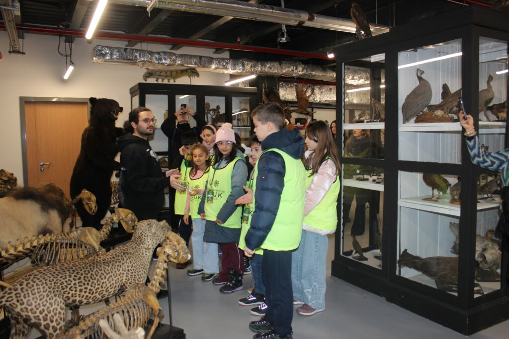 Program, Türkiye’nin ilk zooloji müzesi olma özelliğini taşıyan İÜ Biyoloji Bölümü Zooloji Müzesi ziyaretiyle devam etti. Kerem Kaleli rehberliğinde gerçekleştirilen müze gezisinde, farklı kıtalardan ve karasal ekosistemlerden birçok canlı türüne ait örnekler incelendi. Öğrenciler, daha önce yalnızca kitaplarda ya da ekranlarda gördükleri canlıları yakından görerek adeta canlı bir ders deneyimi yaşadı. Müze gezisinin ardından böcekler ve doğal yaşam temalı kısa bir belgesel izleyen çocuklar, edindikleri bilgileri görsel materyallerle pekiştirme imkânı buldu.