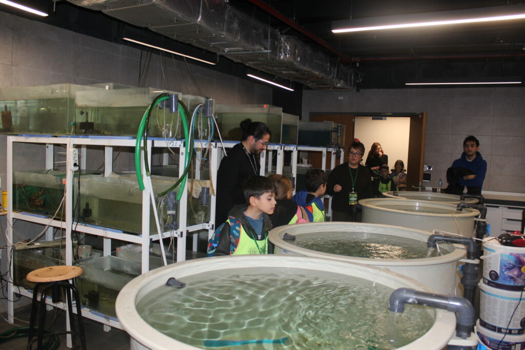 Programın devamında Doç. Dr. Onur Gönülal, deniz bitkileri ve deniz canlıları hakkında bilgilendirme yaptı. Arş. Gör. Ömer Metin ise öğrencileri devre ve akvaryum laboratuvarlarında gezdirerek balıklar ve su canlıları hakkında bilgiler verdi.