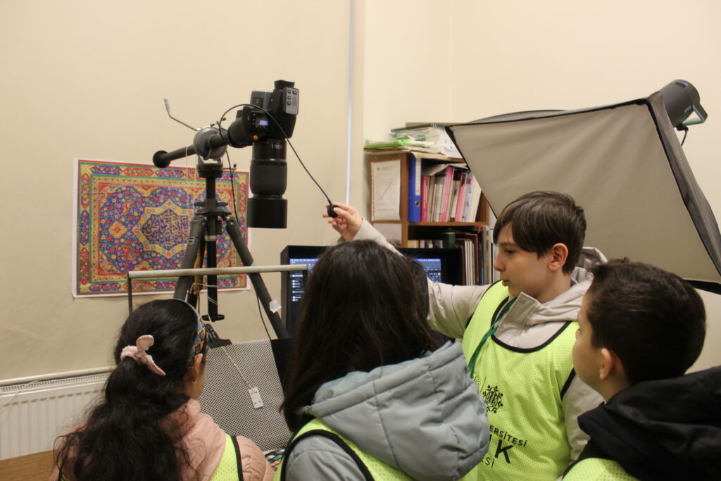 Son günün ilk durağı olan İÜ Nadir Eserler Kütüphanesi’nde öğrenciler, tarihî bir atmosferde geçmişin izlerini sürdü. Fethi Eker Karatay Okuma Salonu’nda Dr. Emel Soyer Kolçak tarafından gerçekleştirilen “Eski Zamanda Çocuklar” sunumuyla, geçmiş dönemlerdeki çocukluk kültürüne dair kıymetli bilgiler paylaşıldı. Ardından fotoğrafçılık atölyesine katılan öğrenciler, Atilla Beşli rehberliğinde stüdyo ekipmanlarının kullanımı ve nesne fotoğrafçılığının teknik detaylarını uygulamalı olarak öğrenme fırsatı buldu.