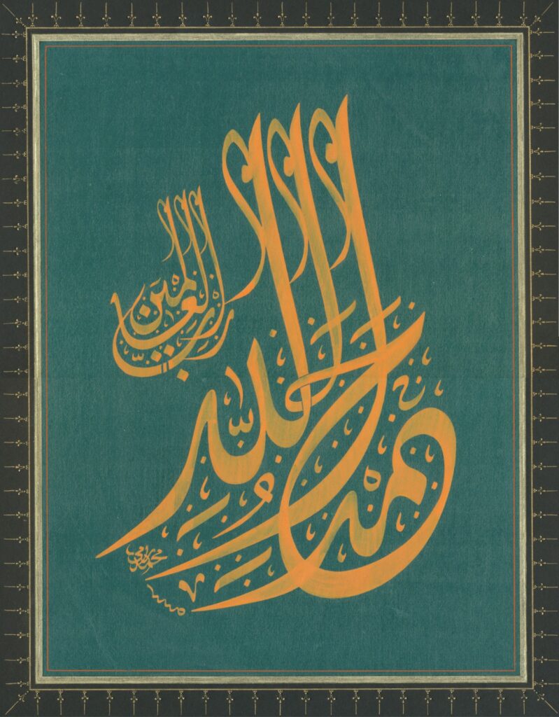 Tasarım sürecinde defalarca denemeler, karalamalar yapılır. Sonunda en beğendiğinizi seçersiniz ve bu ‘yazı kalıbı’ olur. Ardından ışıklı bir masada temiz bir kâğıda yazı kalıbı geçirilir ve tamamlanmış yazı bir mukavva kâğıdının üzerine yapıştırılır, bu işlemden sonra bir tezhip ve ebru ustası o yazının tezyinatını, süslemesini yapar.