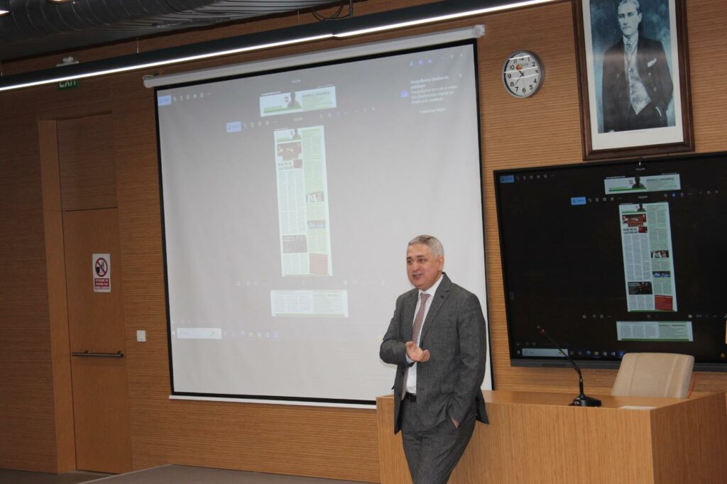 Prof. Dr Güven Büyükbaykal’ın yürüttüğü spor basını dersine konuk olan Gazeteci Uğur Temel, öğrencilerle tecrübelerini paylaştı.