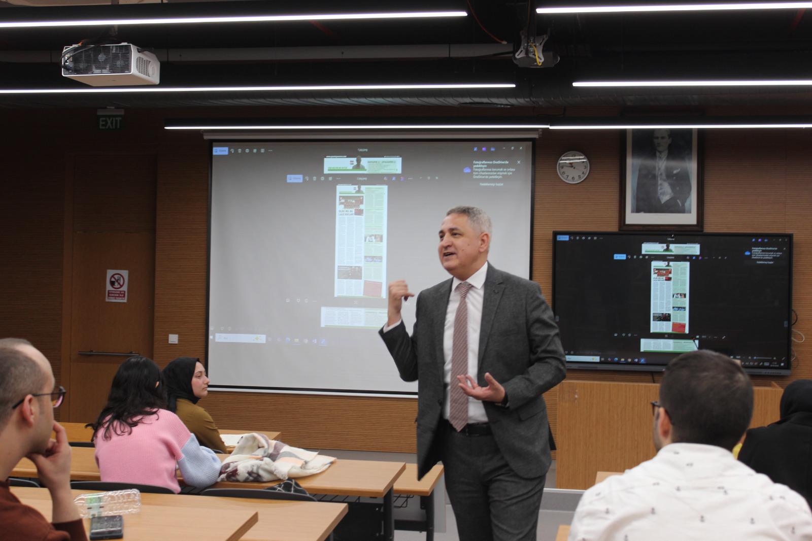 Prof. Dr Güven Büyükbaykal’ın yürüttüğü spor basını dersine konuk olan Gazeteci Uğur Temel, öğrencilerle tecrübelerini paylaştı.