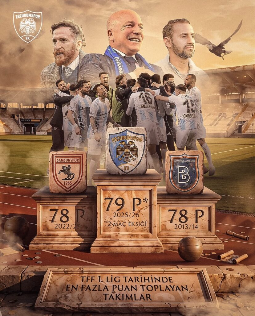Mavi Beyazlılar, 1. Lig tarihinde 2025-26 sezonunda, iki maç eksiğine rağmen 79 puana ulaşarak rekor kırdı. Rekor kıran diğer takımlar ise 78 puanla 2022-23 sezonunda Samsunspor ve 2013-14 sezonunda Başakşehir olmuştu.